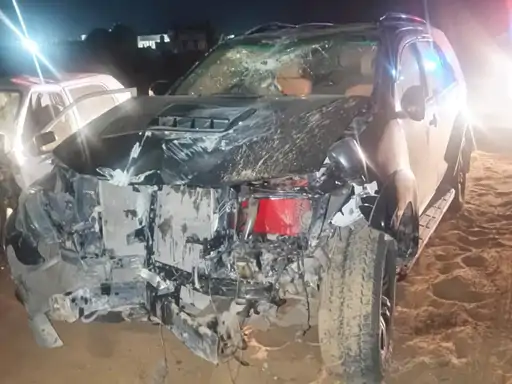 गुढ़ागौड़जी : स्टेट हाईवे 37 पर गुढ़ा थाना इलाके में लीलो की ढाणी के पास शनिवार देर शाम तेज रफ्तार से आ रही दो कारों की आमने-सामने की भिड़ंत हो गई। टक्कर इतनी भीषण थी कि एक कार बेकाबू होकर सड़क किनारे लगे बिजली के खंभे से टकरा गई, जिससे खंभा टूटकर गिर गया।