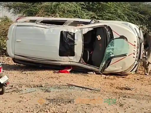 रतनगढ़ में मेगा हाईवे पर कार पलटी, 7 घायल:सालासर से सरदारशहर जा रही थी कार, सभी हायर सेंटर रेफर
