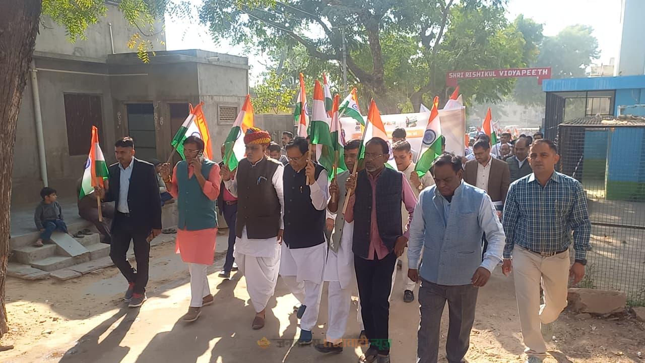 इससे पहले मंत्री ने हरी झंडी दिखाकर पदयात्रा का शुभारंभ किया। पदयात्रा रामलीला मैदान, लक्ष्मणगढ़ से प्रारंभ होकर मुरली मनोहर मंदिर, चौपड़ बाजार, गणेशजी का मंदिर, घंटाघर एवं पुराना बस स्टैंड होते हुए तोदी कॉलेज पहुंची, जहां मुख्य कार्यक्रम आयोजित किया गया।