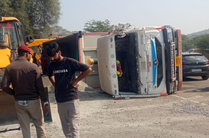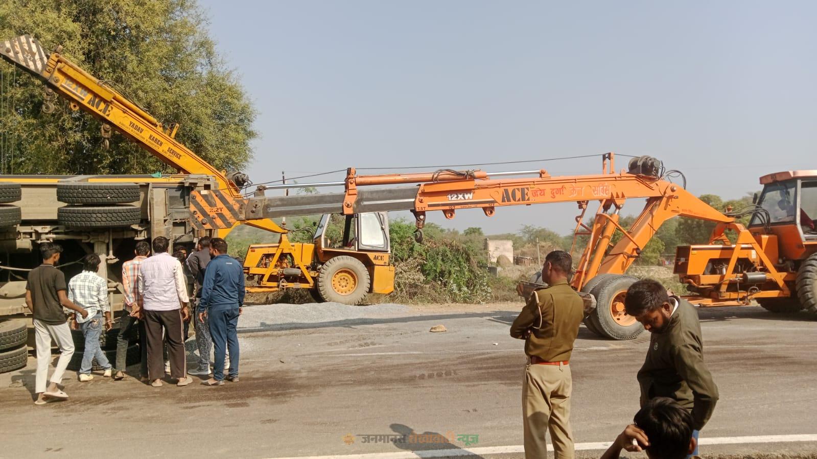 चिरानी के पास में अनियंत्रित होकर से रोड़ी से भरे दो ट्रोले पलटे, सड़क पर लगा जाम, पुलिस ने क्रेन की मदद से खुलवाया सड़क मार्ग