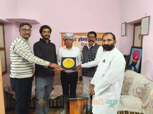 सुजानगढ़ : पथिक सेना संगठन के राष्ट्रीय कार्यकारिणी व संस्थापक सदस्य हरिनारायण बरवाला सुजानगढ़ पहुंचे। पथिक सेना कार्यालय में संगठन के पदाधिकारियों ने उनका स्वागत किया। इस दौरान गुर्जर समाज के मुद्दों और संगठन की आगामी रणनीति पर चर्चा की गई। संगठन के गिरधारी लाल कसाना, प्रकाश जींदड, अनिल पोसवाल और बंसीलाल पोसवाल ने बरवाला का साफा बांधकर और संगठन का मोमेंटो भेंट कर सम्मान किया।