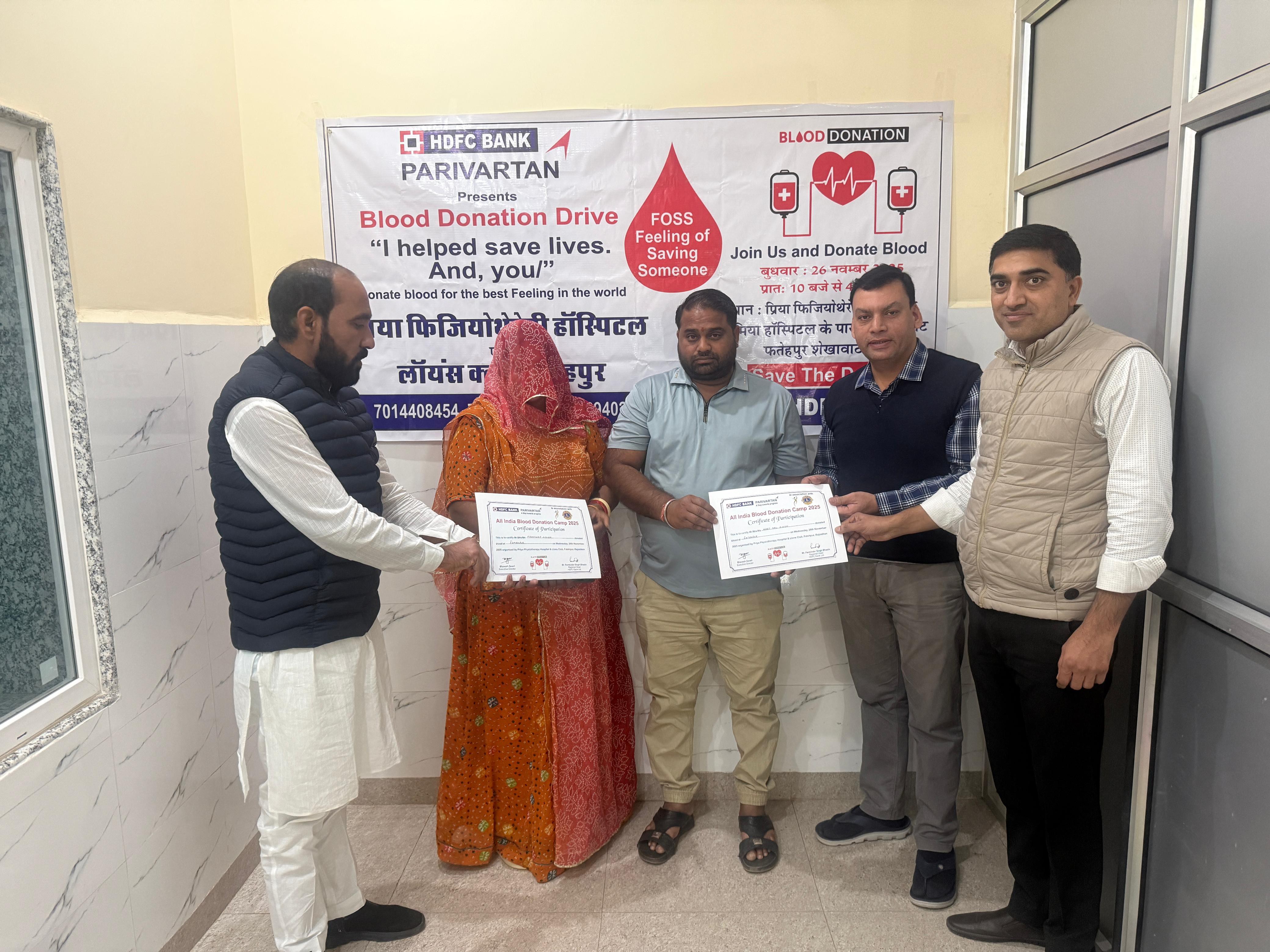 फतेहपुर में 62 रक्तदाताओं ने किया रक्तदान:रक्तदाताओं को प्रशस्ति पत्र देकर किया सम्मानित, जूस और नाश्ते की व्यवस्था भी की