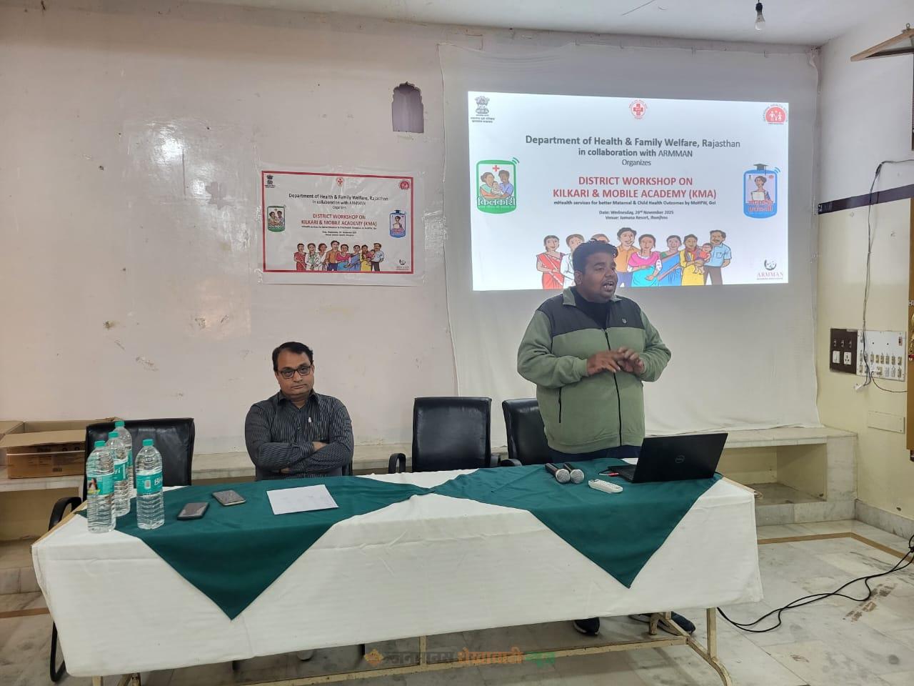 झुंझुनूं : राष्ट्रीय स्वास्थ्य मिशन की मातृ व शिशु स्वास्थ्य संचार प्रणाली को और प्रभावी बनाने के उद्देश्य से बुधवार को जमुना रिजॉर्ट में मोबाइल एकेडमी एवं किलकारी कार्यक्रम पर जिला स्तरीय कार्यशाला आयोजित की गई। किलकारी सेवा के माध्यम से गर्भवती व प्रसूता महिलाओं को गर्भकाल से लेकर प्रसव के बाद तक जरूरी सावधानियों व स्वास्थ्य संबंधी जानकारी के वॉयस मैसेज भेजे जा रहे हैं। अब महिलाओं को जानकारी के लिए न किताब देखनी पड़ रही है, न इंटरनेट खंगालना पड़ रहा है।