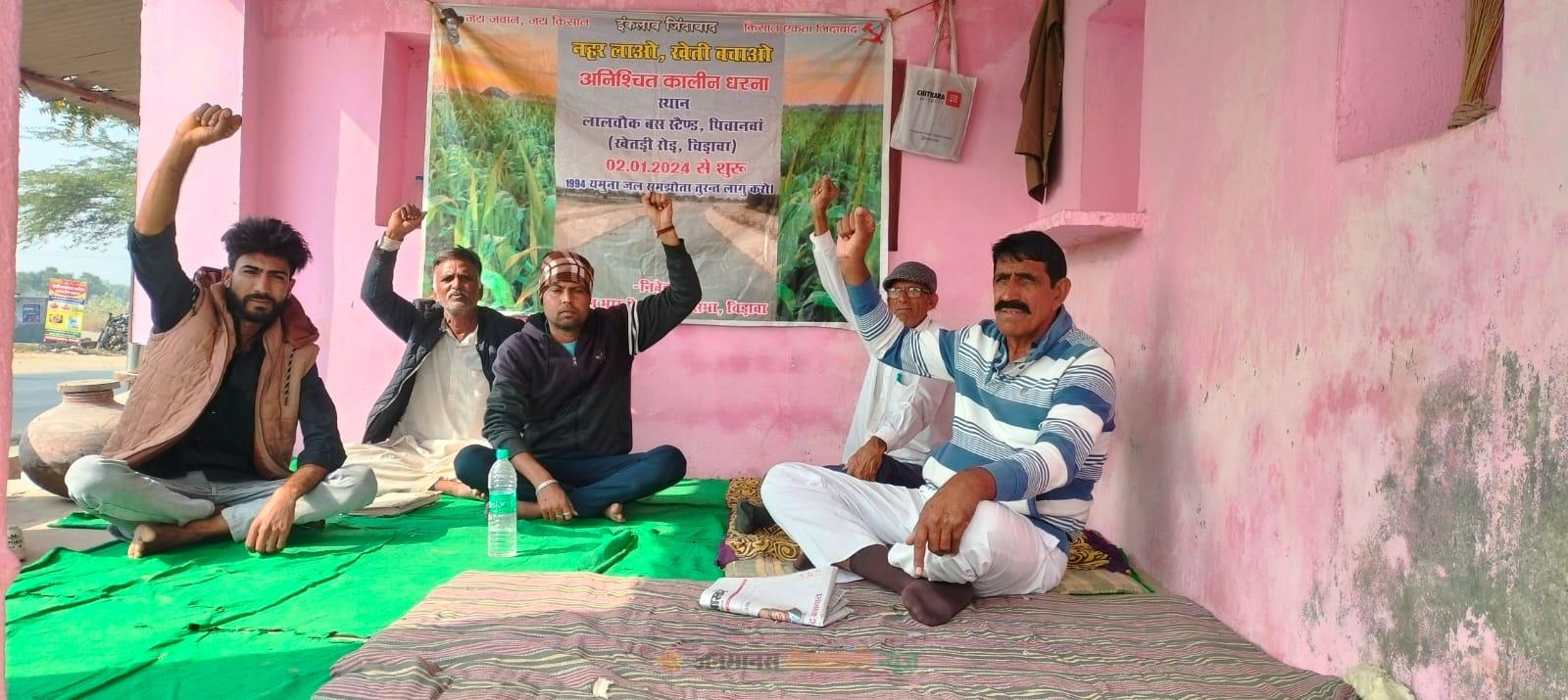 चिड़ावा : चिड़ावा–खेतड़ी रोड स्थित लाल चौक पर यमुना जल समझौता लागू करवाने की मांग को लेकर अखिल भारतीय किसान सभा का अनिश्चितकालीन धरना मंगलवार को 696वें दिन भी जारी रहा। यह धरना 27 नवंबर को भी जारी रहा।