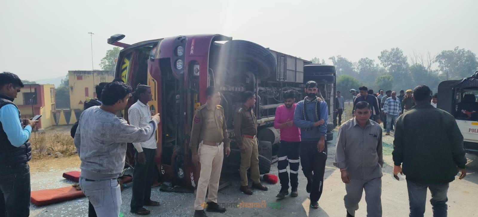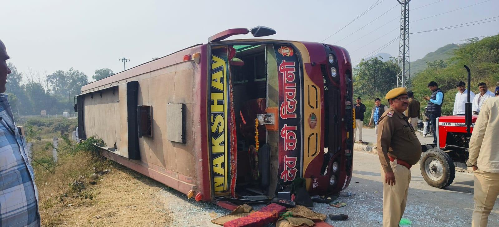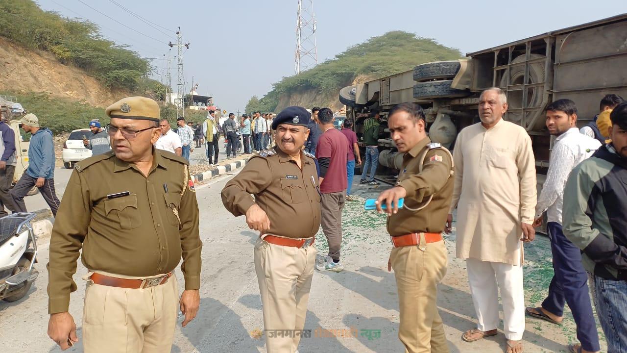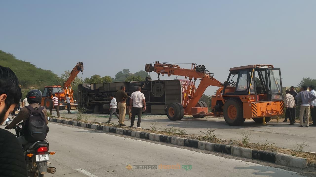कॉपर के भैरू घाटी के पास सवारियों से भरी बस अनियंत्रित होकर पलटी, 16 यात्री घायल, 5 को झुंझुनूं रैफर