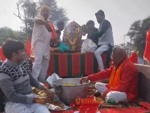चिड़ावा के अडूका में दुर्गा मैया की मूर्ति स्थापित:खातियों की ढाणी में कलश यात्रा के साथ धार्मिक आयोजन