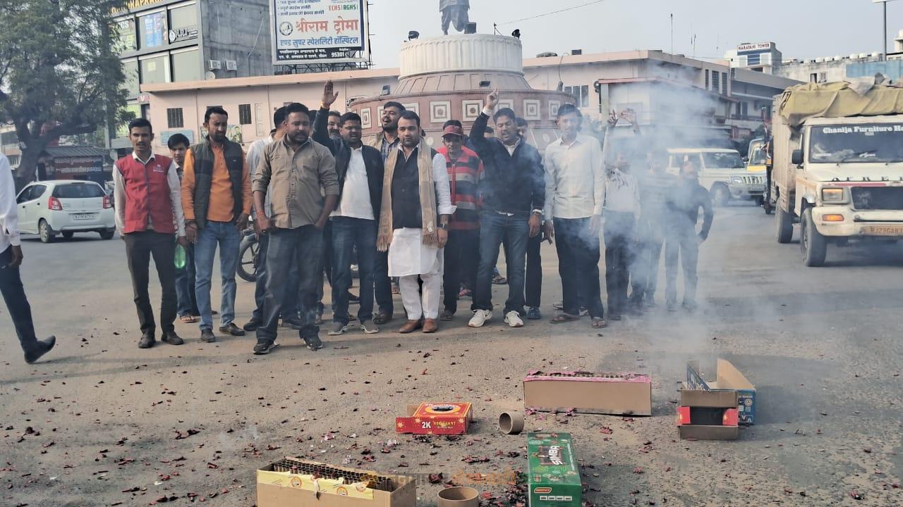 बगड़ी के महामंत्री और पोषवाल के मंत्री बनने पर जश्न:भाजपा कार्यकर्ताओं ने बजरंग कांटा पर जमकर की आतिशबाजी, मिठाई बांटकर दी बधाई
