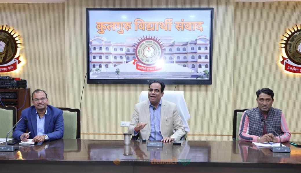 कुलगुरु ने विद्यार्थियों से नवाचारपूर्ण विचार लाने का आग्रह करते हुए कहा कि विश्वविद्यालय उन पर अमल करेगा। संवाद में फोरेंसिक, फिजिक्स, केमेस्ट्री, जूलॉजी, बॉटनी और योगा विभाग के छात्रों ने भाग लिया।