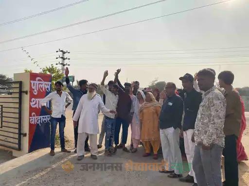 बीदासर में पुलिस को 10 दिन का अल्टीमेटम:पीड़ित परिवार और वार्डवासियों ने थाने के बाहर प्रदर्शन किया, बोले- खुलासा नहीं किया तो धरना देंगे