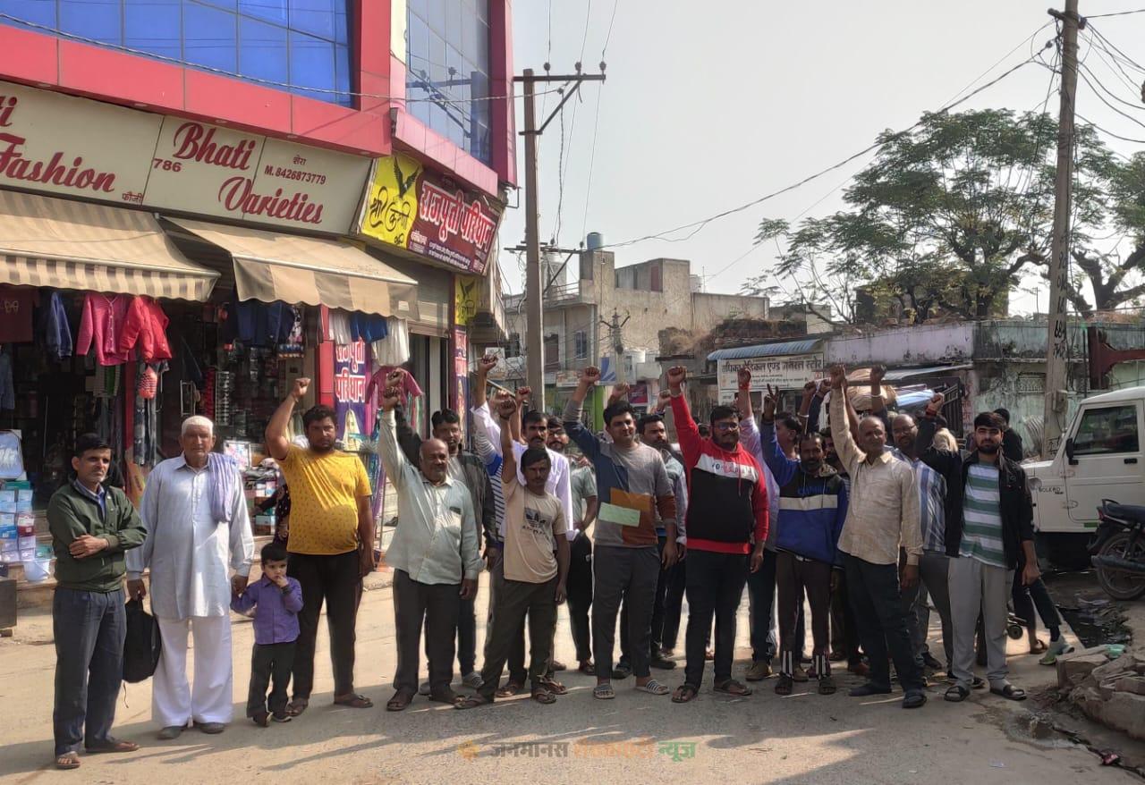विरोध प्रदर्शन में कमरुद्दीन कुरैशी, शमशेर भाटी, बंटी निर्माण, राधे केजड़ीवाल, संजय शर्मा, अनिल अग्रवाल, रामजीलाल कुमावत, संदीप कुमावत, भोम सिंह, आरिफ अली भाटी, बंटी केजड़ीवाल, लखन तंवर, शफी मोहम्मद, ओमप्रकाश शर्मा, पवन कुमावत, राजू शर्मा सहित बड़ी संख्या में ग्रामीण और व्यापारी मौजूद रहे।