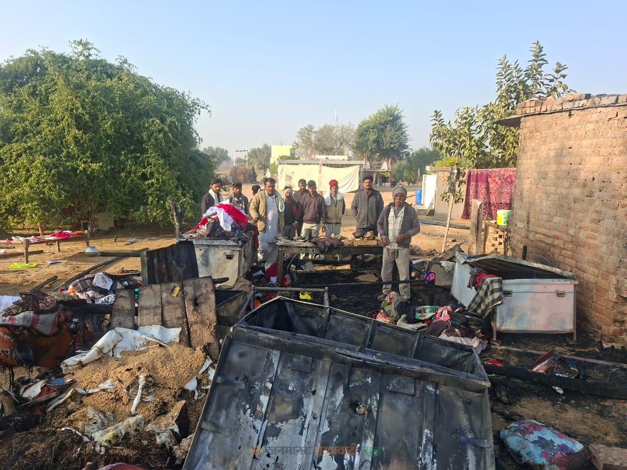 रात करीब 9 बजे किसान नंदराम तरड़ के खेत में बनी ढाणी में बिजली के तारों में शॉर्ट सर्किट हुआ और देखते ही देखते आग फैल गई। आगजनी में किसान को बड़ा नुकसान हुआ है। ढाणी में रखे 60 हजार रुपए नकद, करीब 6 लाख रुपए के सोने-चांदी के आभूषण, 200 किलो ग्वार, 700 किलो गेहूं और घर का जरूरी सामान जल गया।