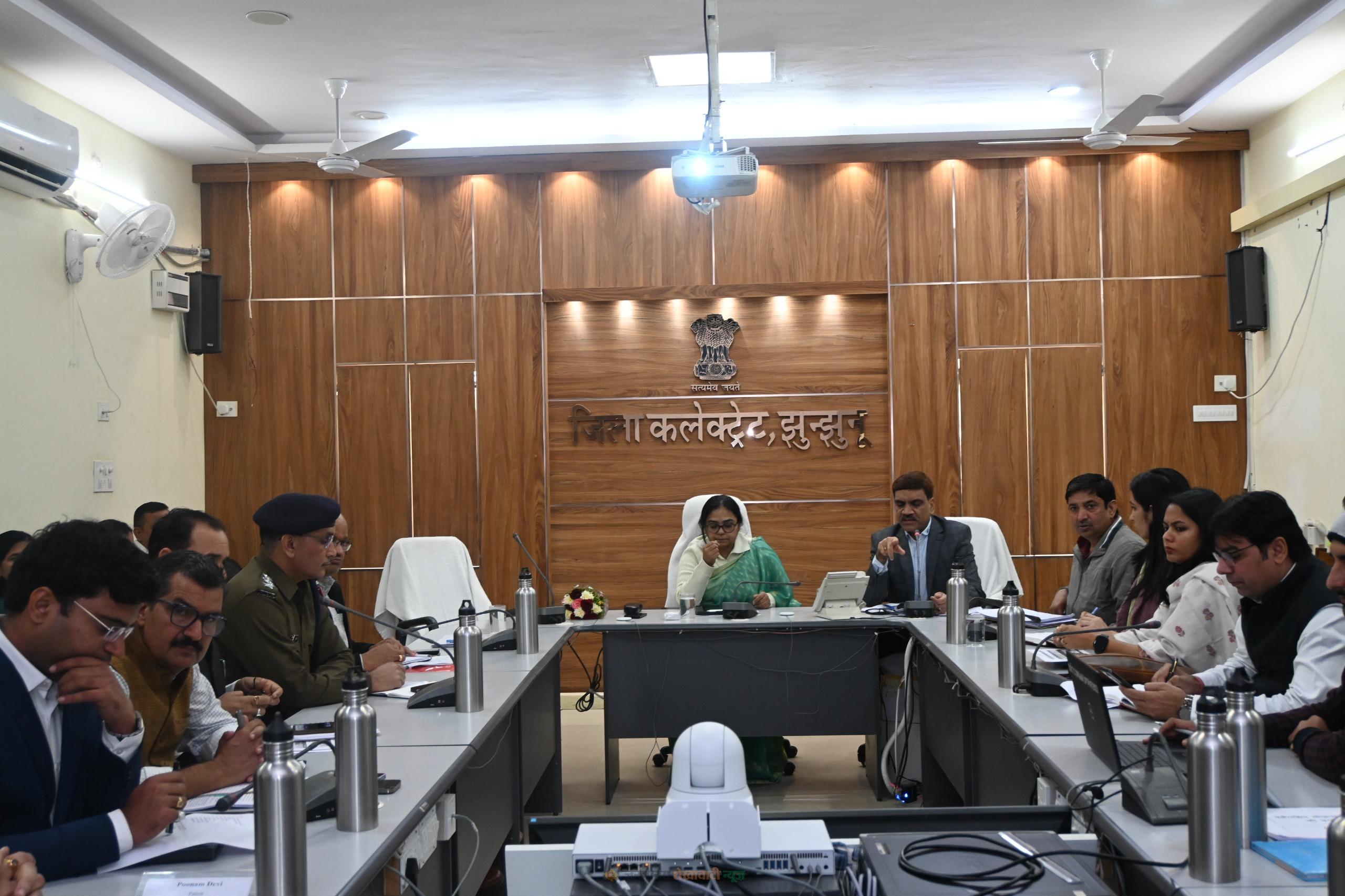 झुंझुनूं : जयपुर संभागीय आयुक्त पूनम ने गुरुवार को जिला कलेक्ट्रेट सभागार में जिला स्तरीय अधिकारियों की बैठक ली। बैठक में विभिन्न फ्लैगशिप योजनाओं की प्रगति और आगामी कार्यक्रमों की तैयारियों की समीक्षा की गई। जिला कलेक्टर डॉ. अरुण गर्ग ने बैठक में गिव अप अभियान, कुसुम योजना, लाडो प्रोत्साहन योजना, प्रधानमंत्री कृषि सिंचाई योजना, कृषक कल्याण योजना, प्रधानमंत्री आयुष्मान भारत स्वास्थ्य योजना, स्वच्छ भारत मिशन सहित अन्य योजनाओं की वर्तमान प्रगति एवं उपलब्धियों का प्रस्तुतीकरण किया।