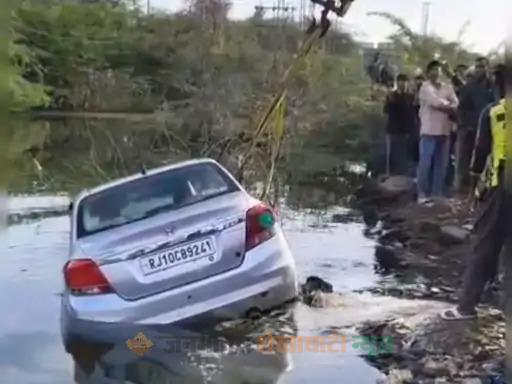 मेगा हाईवे पर कार अनियंत्रित होकर गंदे पानी में गिरी:भाई-बहन को सुरक्षित निकाला, शादी की खरीदारी के लिए जा रहे थे जयपुर