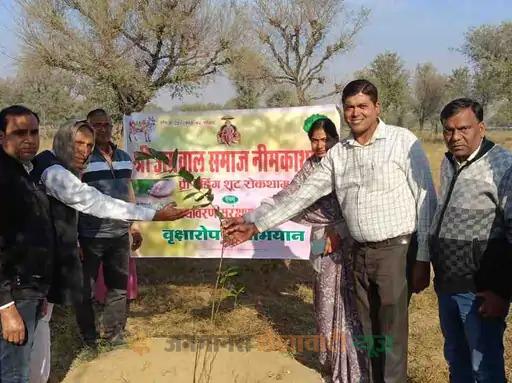 अग्रवाल समाज ने नीमकाथाना में किया पौधारोपण:मांगलिक अवसरों पर लगाते हैं पेड़, सिंगल यूज प्लास्टिक के खिलाफ भी चलाई मुहीम
