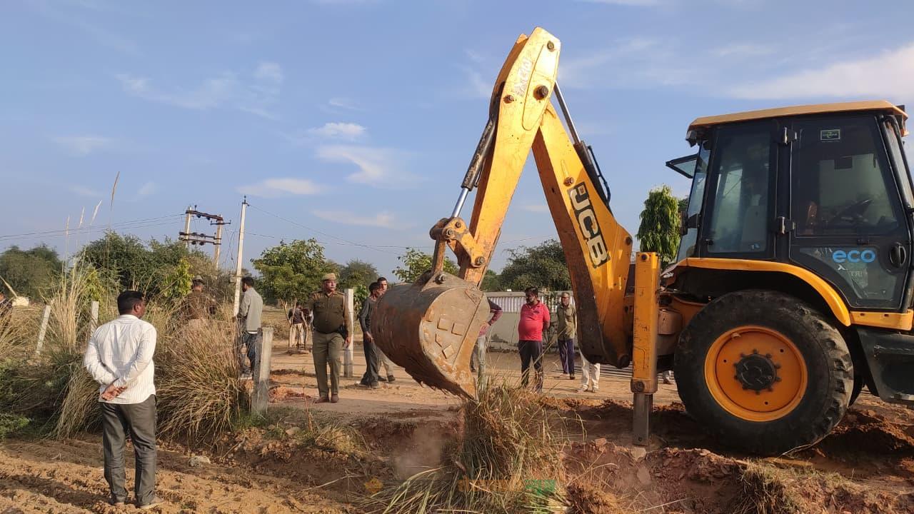लोयल गांव में अतिक्रमण पर चला प्रशासन का पीला पंजा:सती की ढाणी से सरदारपुरा सीमा तक 1 किलोमीटर एरिया कब्जा मुक्त