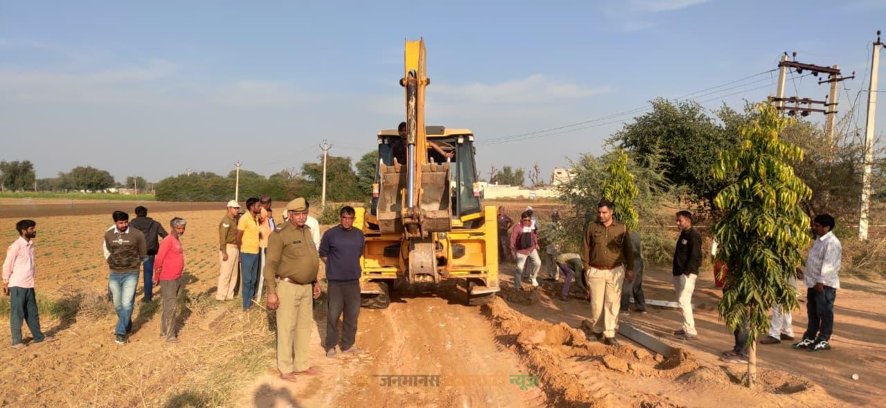 यह सड़क 12.5 फुट चौड़ी बनाई जानी है। उन्होंने बताया कि ग्रामीणों द्वारा खेतों और घरों के पास किए गए अतिक्रमण के कारण सड़क कटान का कार्य बाधित हो रहा था। इसके बाद पीडब्ल्यूडी ने उपखंड कार्यालय में अतिक्रमण हटाने के लिए प्रार्थना पत्र दिया था।तहसीलदार सुनील कुमार के निर्देश पर राजस्व विभाग की टीम मौके पर पहुंची।