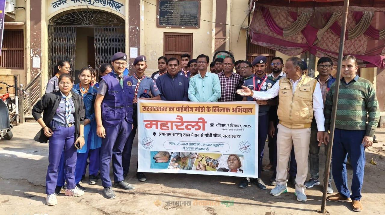 सरदारशहर : अगेंस्ट चाइनीस मांझा अभियान के अंतर्गत एक जन जागृति रैली का आयोजन किया जिसमें बड़ी संख्या में शहर के युवाओं, नागरिकों,व्यापारियों और विद्यार्थियों ने भाग लिया। रैली का आयोजन ताल मैदान से प्रारंभ होकर गांधी चौक तक किया गया।