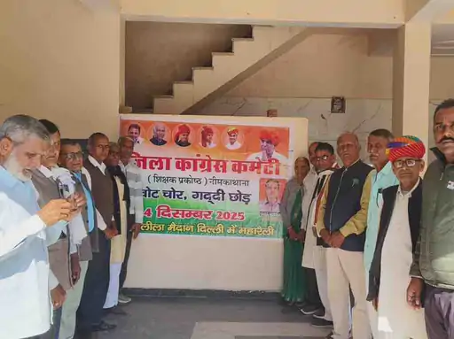 नीमकाथाना : नीमकाथाना में जिला कांग्रेस कमेटी के शिक्षक प्रकोष्ठ की ओर से बैठक आयोजित की गई। यह बैठक आगामी 14 दिसंबर को दिल्ली के रामलीला मैदान में होने वाली “वोट चोर, गद्दी छोड़ो” महारैली की तैयारियों के संबंध में थी। बैठक में निर्णय लिया गया कि नीमकाथाना विधानसभा क्षेत्र से बड़ी संख्या में शिक्षक संघ के सदस्य दिल्ली जाएंगे।