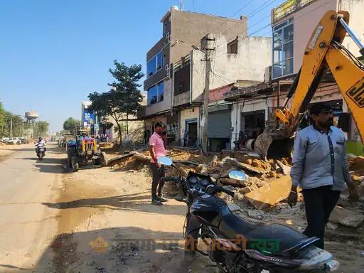 चिड़ावा में मंड्रेला रोड से अतिक्रमण हटाए:दुकानदारों ने टीन शेड लगाकर कर रखा था कब्जा, कच्चे-पक्के निर्माण ध्वस्त