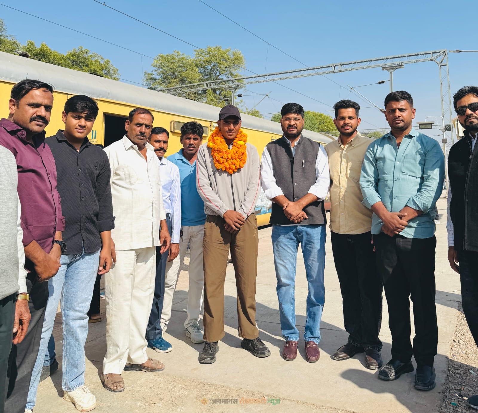 चूरू : रविवार को चूरू रेलवे स्टेशन पर अग्निवीर मोइन खान पुत्र आरिफ खान का आर्मी आर्म्ड कोर से ट्रेनिंग पूर्ण कर घर वापसी पर गर्मजोशी से स्वागत किया गया। युवा कांग्रेस जिलाध्यक्ष आसिफ खान के नेतृत्व में हुए इस स्वागत समारोह में बड़ी संख्या में परिजन और स्थानीय युवाओं ने हिस्सा लिया।