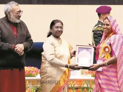 आसपुरा गांव की धापा देवी को डिजाइन इनोवेशन अवॉर्ड:राष्ट्रपति द्रौपदी मुर्मू ने किया सम्मानित, 14 सालों से पारंपरिक शिल्प कौशल में किए नवाचार