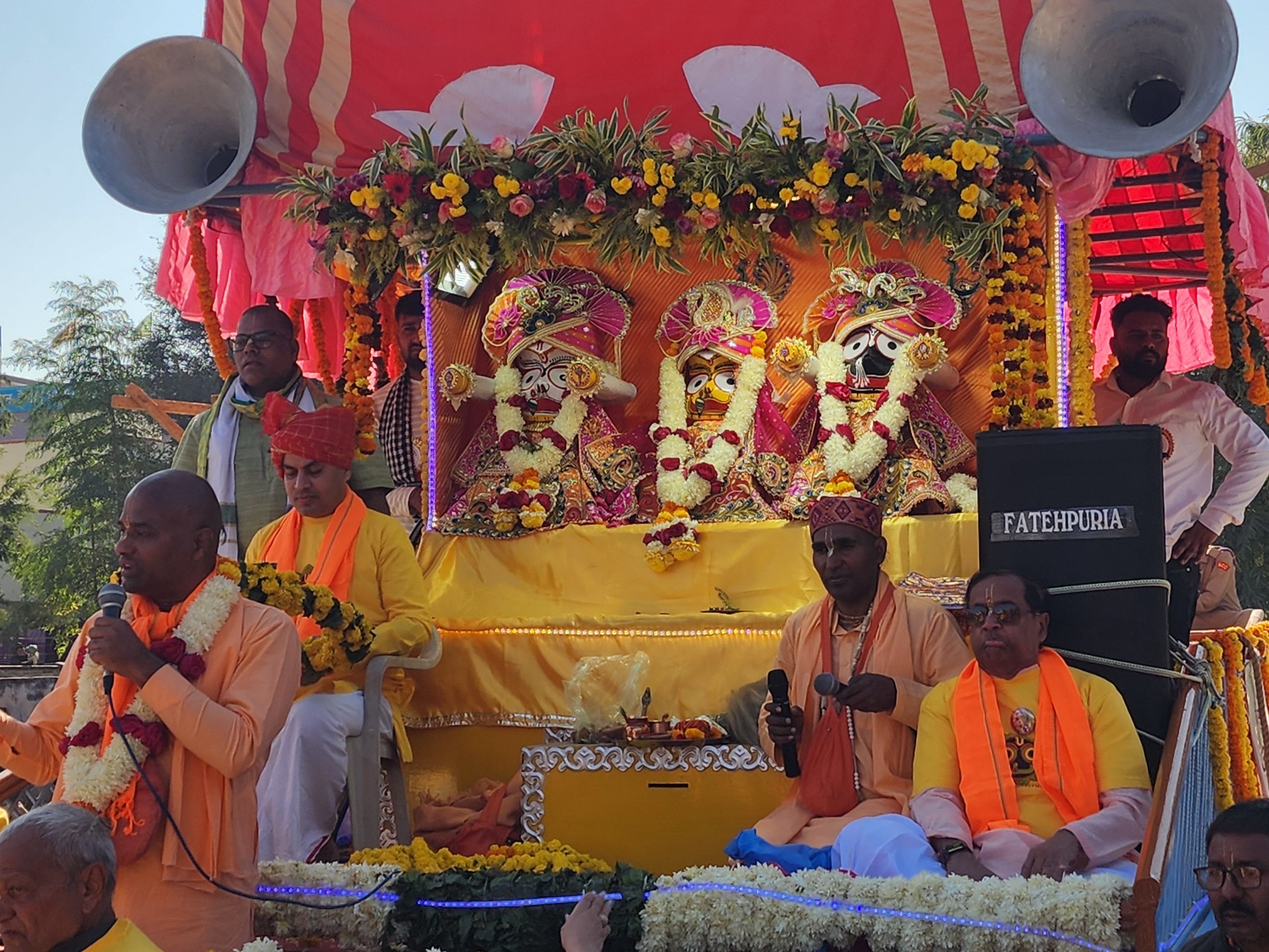 यात्रा की रवानगी से पूर्व भगवान जगन्नाथ, बलभद्र और सुभद्रा के विग्रहों को विधिवत विराजित किया गया। मधुबन आश्रम ऋषिकेश के स्वामी परमानंद प्रभु और उनके साथ आए संतों ने विग्रहों का श्रृंगार किया। बैंकॉक प्रवासी विनय कुमार-शकुंतला केडिया और मुंबई प्रवासी प्रेम कुमार-कुसुम केडिया परिवार ने पंडितों के आचार्यत्व में विग्रहों की पूजा-अर्चना की।