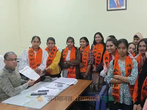 चूरू : चूरू में अखिल भारतीय विद्यार्थी परिषद (एबीवीपी) ने शुक्रवार को स्वामी गोपालदास राजकीय कन्या कॉलेज की विभिन्न समस्याओं को लेकर कॉलेज प्राचार्य को ज्ञापन सौंपा। एबीवीपी की चूरू इकाई की छात्राओं ने प्राचार्य डॉ. चंपालाल वर्मा को 5 सूत्रीय मांगों के संबंध में यह ज्ञापन दिया।
