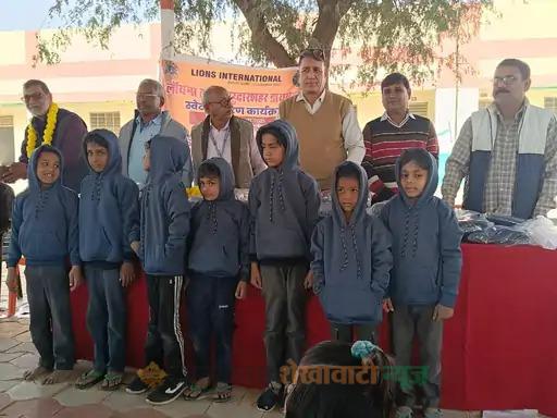 सरदारशहर में लायंस क्लब की पहल:55 बच्चों को बांटे स्वेटर, राजकीय उच्च माध्यमिक स्कूल भोजरासर में कार्यक्रम