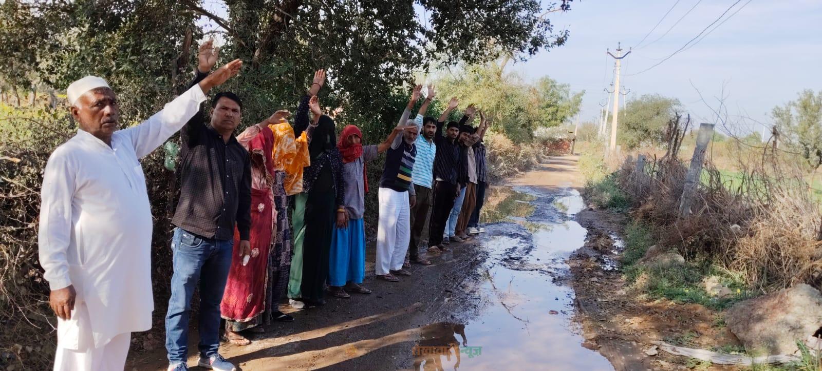 जल भराव से सड़क हुई जर्जर, ग्रामीणों ने किया प्रदर्शन