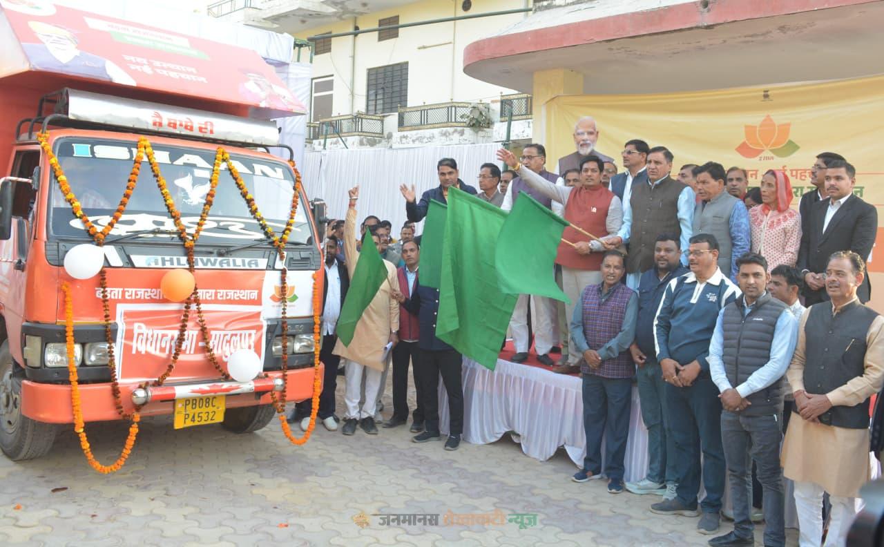प्रभारी मंत्री गहलोत ने कहा कि मुख्यमंत्री भजनलाल शर्मा के नेतृत्व में राजस्थान विकास की नई ऊँचाइयाँ छू रहा है। सरकार ने दो वर्षों में आमजन के हित में अनेक महत्वपूर्ण निर्णय लिए हैं और विकास की गति तेज हुई है। उन्होंने बताया कि विकास रथ जिले के सभी विधानसभा क्षेत्रों का दौरा करेंगे तथा प्रदेश सरकार की नीतियों, उपलब्धियों और जनकल्याणकारी योजनाओं की जानकारी आमजन तक पहुंचाएंगे। रथों में सुझाव पेटिका भी रखी गई है, जिसमें नागरिक विकास कार्यों और नीतियों को लेकर अपने मूल्यवान सुझाव दे सकेंगे। राज्य सरकार इन सुझावों पर गंभीरता से अमल करेगी।