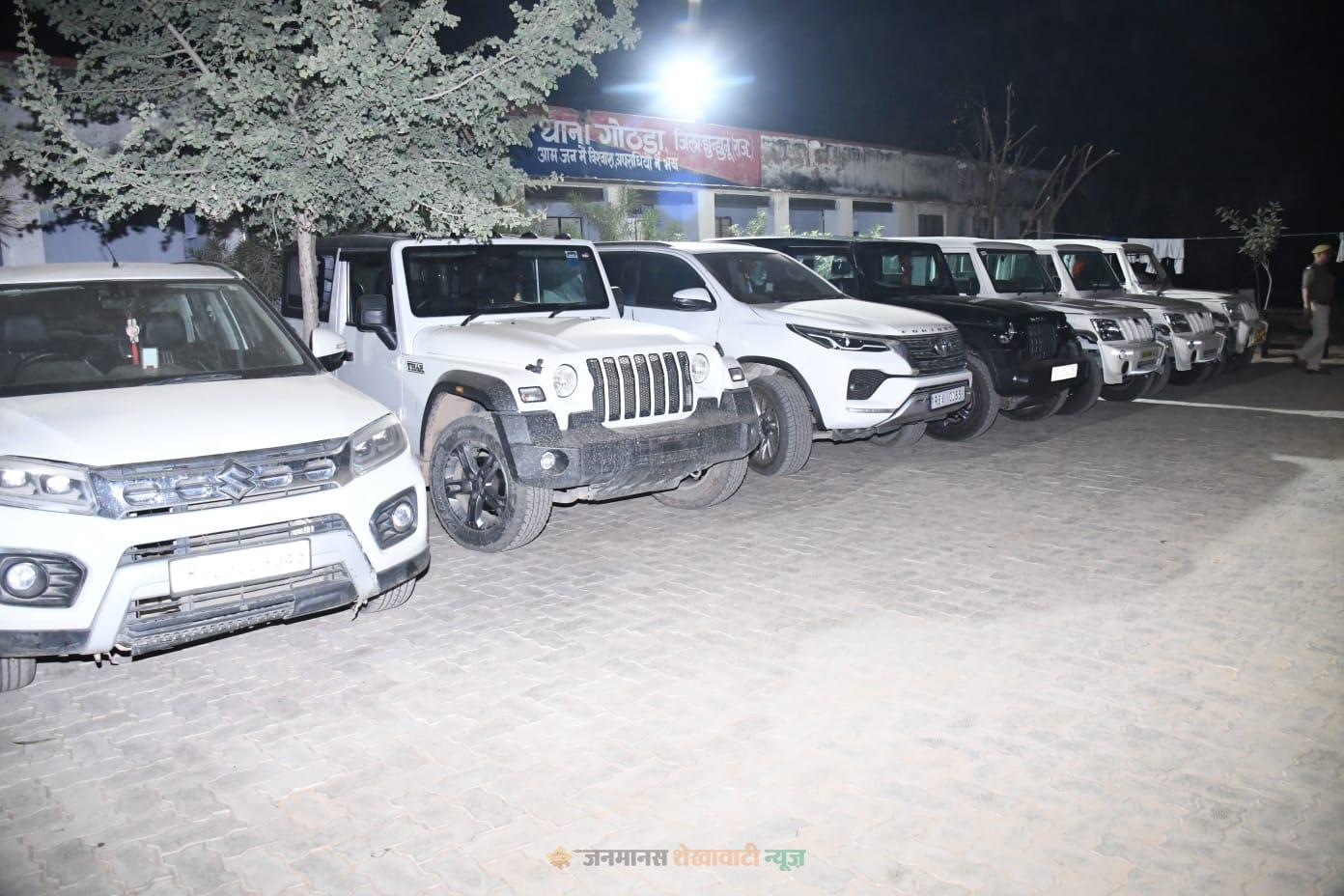 पुलिस ने कार्रवाई करते हुए हिस्ट्रीशीटर रविन्द्र कटेवा, विकास बटार, संदीप गिल और पंकज रूलानिया को गिरफ्तार किया है। आरोपियों के कब्जे से तीन थार, तीन कैम्पर, एक फॉर्च्यूनर और एक ब्रेजा गाड़ी जब्त की गई है।