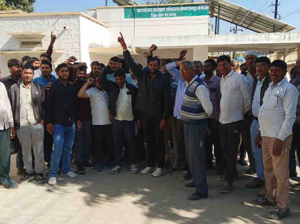 झिराना को गणेश्वर फीडर में जोड़ने का विरोध:ग्रामीणों ने बिजली विभाग कार्यालय का घेराव किया, नीमकाथाना फीडर में ही रखने की मांग