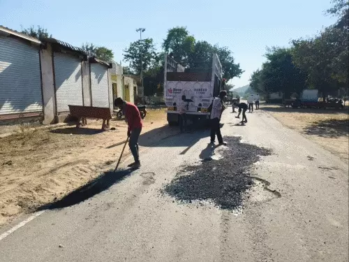उदयपुरवाटी के शाकंभरी रोड पर पेचवर्क शुरू:तीन सालों से खराब था रास्ता, स्वीकृति नहीं मिलने तक मरम्मत होगी