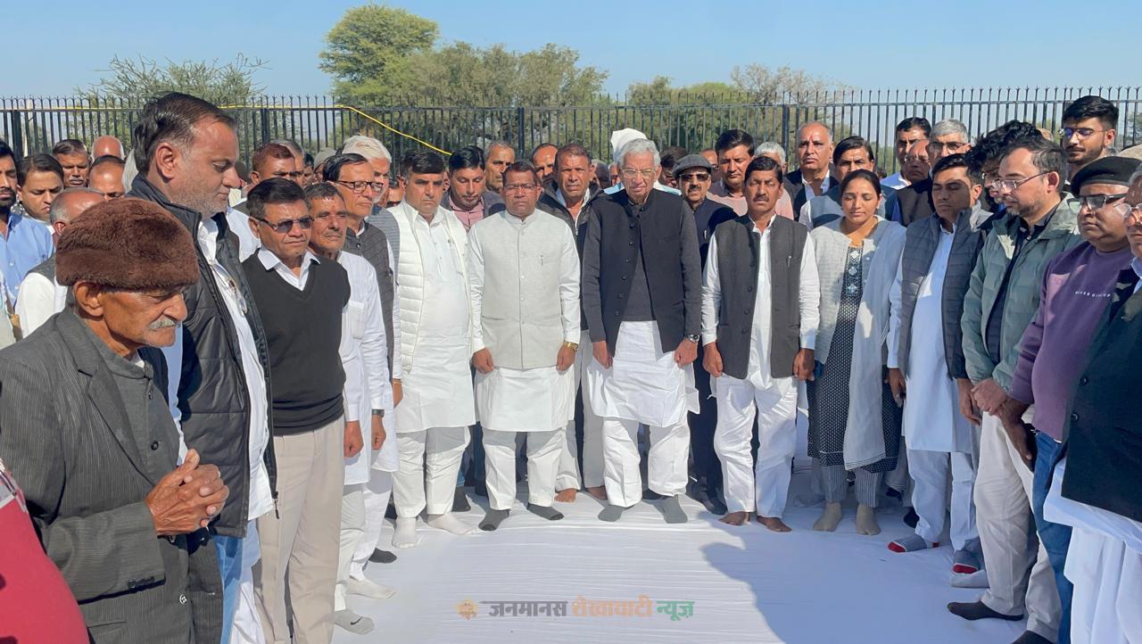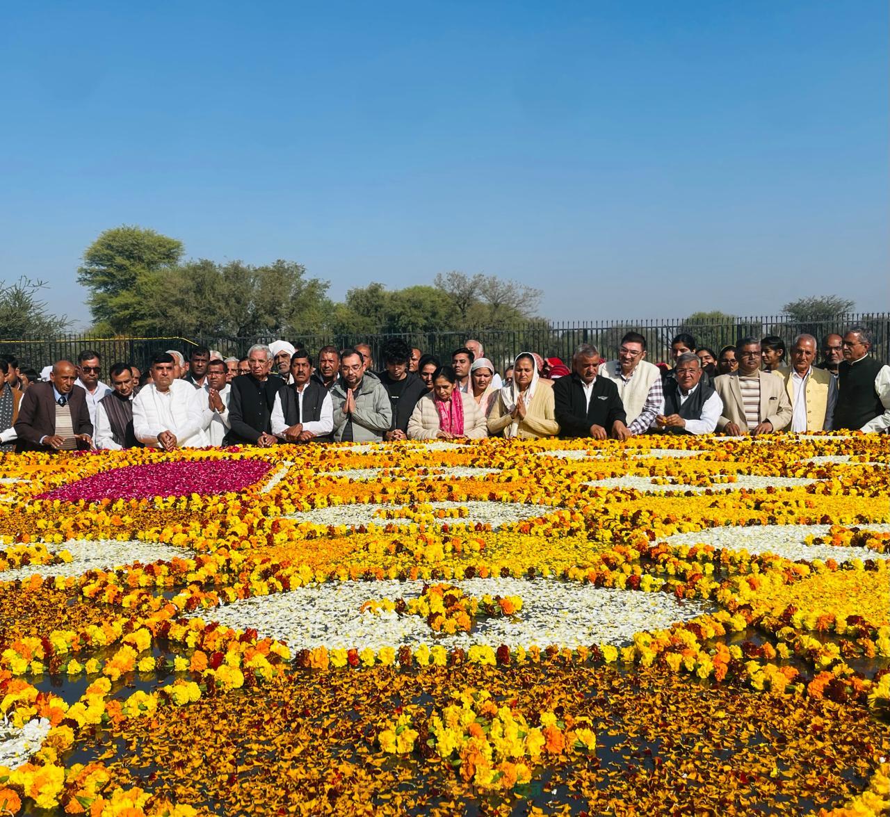 चिड़ावा में शीशराम ओला को पुण्यतिथि पर श्रद्धांजलि:अरड़ावता में बड़ी संख्या में जुटे लोगों, समाधि पर पुष्प अर्पित कर दी श्रद्धांजलि