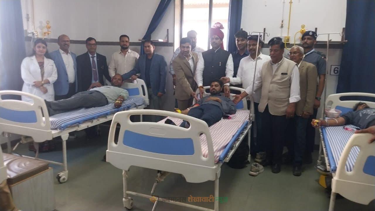 नवलगढ : छोटा बस स्टैंड के पास में स्थित श्री हरि हॉस्पिटल एंड ट्रोमा सेंटर परिसर में सोमवार को स्वैच्छिक रक्तदान शिविर का आयोजन किया गया। कार्यक्रम के मुख्य अतिथि नवलगढ विधायक विक्रम सिंह जाखल रहे। अध्यक्षता पंचायत समिति विकास अधिकारी रितेश सांखला ने की । इस दौरान बीसीएमओ डॉ प्रहलाद सिंह, हरि हॉस्पिटल के सीईओ हरिप्रसाद सैनी, जिला परिषद सदस्य बीरबल सिंह गोदारा, पार्षद प्रतिनिधि सुरेन्द्र सिंगोदिया, डॉ नवल किशोर सैनी, पूर्व चेयरमैन शोएब खत्री व परमेश्वरी देवी बतौर मंचस्थ अतिथि थे।