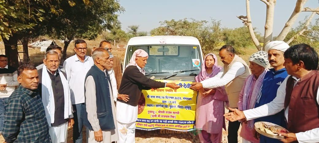 पचेरी : बुहाना उपखंड के भिर्र गांव में स्थित श्री कृष्ण गौशाला समिति को गांव झारोड़ा निवासी राजेश शास्त्री पत्नी राजपाल सिंह ने अपनी स्वर्गीय माता सरबती देवी की पुण्य स्मृति में एक बड़ी उदारता दिखाई। उन्होंने माताजी की शांति सभा के अवसर पर गौशाला को 6 लाख 5 हजार रुपये मूल्य की गाड़ी भेंट की। यह भेंट गौशाला के कार्यों को और मजबूत बनाने में महत्वपूर्ण योगदान देगी। शांति सभा में गौशाला समिति के सहाय ईश्वर मान अध्यक्ष, रामस्वरूप मान, वेदप्रकाश यादव, सहदेव रेबारी, नीतिन मान, सत्येंद्र जांगिड़, रणजीत राइका, सूबेदार बीरसिंह यादव, श्रीपाल मान, रवि शर्मा और विनोद यादव सहित अन्य सदस्य उपस्थित रहे। साथ ही झारोड़ा गांव से सूबेदार सरजीत, धर्मपाल, लिखमाराम, सुलतान, कर्नल रामसिंह, राजकुमार नंबरदार, कृष्ण कुमार, उम्मेद सिंह, सूबेदार बलबीर सिंह, इंदू सिंह, प्रताप सिंह, जयभगवान, डॉ. यशपाल सहित गांव के कई गणमान्य नागरिक भी इस अवसर पर मौजूद रहे।