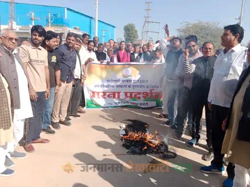 विरोध प्रदर्शन में असलम खोखर, किशोर दांदू, रियाजत खान, मुश्ताक खान, विकास मील, जमील चौहान, बजरंग सैन, अरविंद चाकलान, कल्याणसिंह शेखावत, अभिषेक बुडानिया, रामवीर सिंह रायका, मुख्तयार खान, अहसान खान, दिलावर खान, रामनिवास सहारण, सुनील मेघवाल झारिया, सद्दाम हुसैन, आदूराम न्यौल सहित अनेक कांग्रेस पदाधिकारी और कार्यकर्ता मौजूद थे।