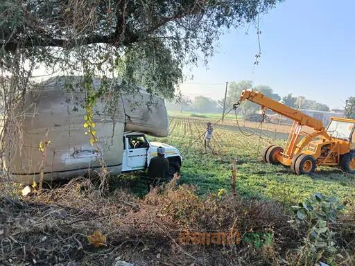गुढ़ागौड़जी : गुढ़ागौड़जी के धमोरा गांव के जाखड़ मोड़ पर बुधवार को पराली से भरी एक पिकअप गाड़ी अनियंत्रित होकर पलट गई। गनीमत रही कि इस हादसे में कोई जनहानि नहीं हुई। यह पिकअप गाड़ी हरियाणा के महेंद्रगढ़ से पशुओं के लिए चारा लेकर आ रही थी। चालक इस मार्ग से अनजान था और जाखड़ मोड़ की जानकारी न होने के कारण अचानक आए तीखे मोड़ पर वाहन का संतुलन बिगड़ गया। हादसे के दौरान पिकअप गाड़ी सड़क से उतरकर खेत की तारबंदी तोड़ते हुए खेत में जा गिरी।