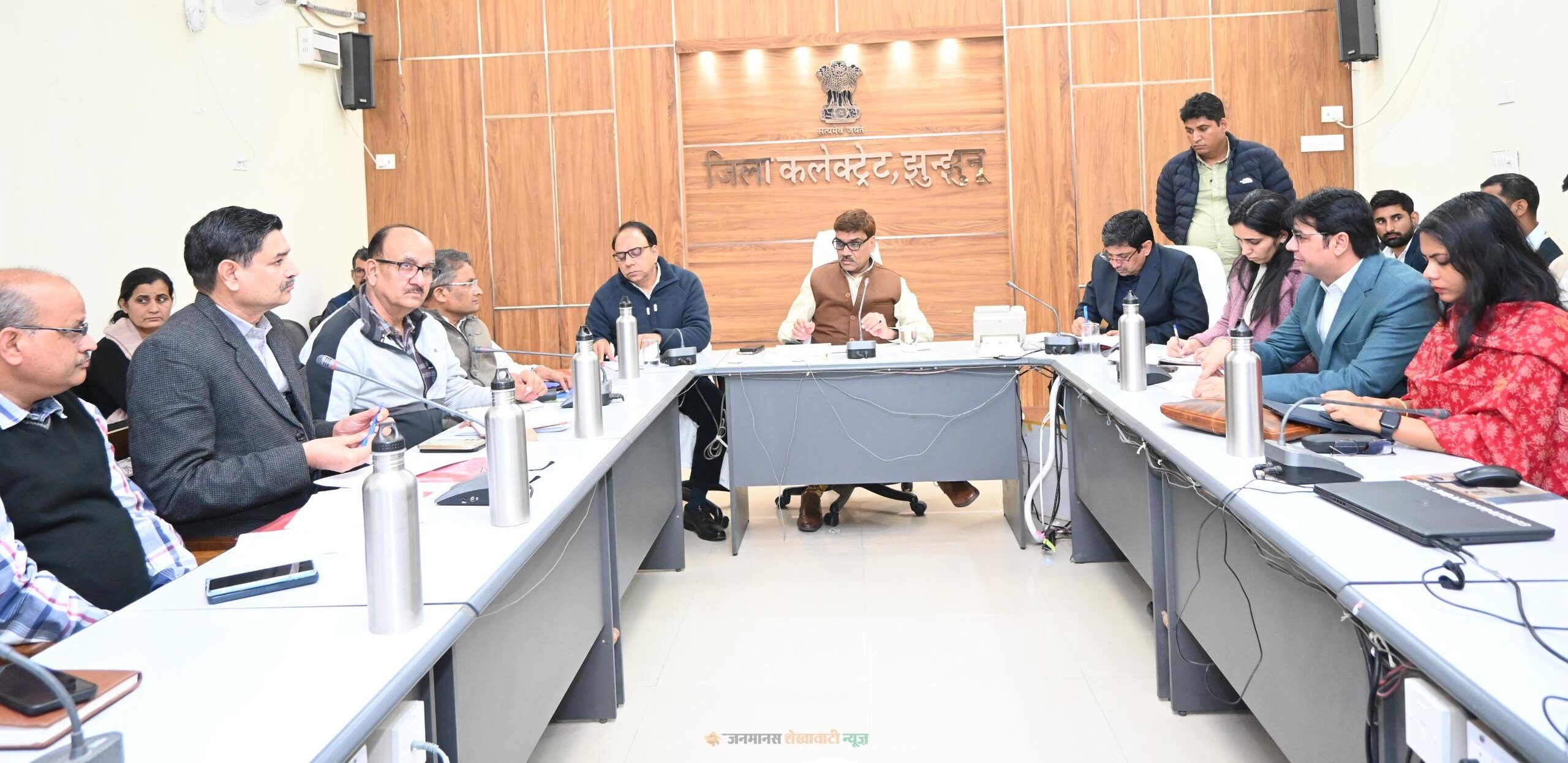 झुंझुनूं : बुधवार को कलेक्ट्रेट सभागार में जिला कलेक्टर डॉ. अरुण गर्ग की अध्यक्षता में साप्ताहिक समीक्षा बैठक आयोजित की गई। बैठक में जिला स्तरीय अधिकारियों के साथ विभिन्न विभागों की प्रगति की विस्तार से समीक्षा की गई। बैठक से पूर्व सभी जिला स्तरीय अधिकारियों एवं अधीनस्थ कर्मचारियों को संपर्क पोर्टल के प्रभावी उपयोग को लेकर प्रशिक्षण दिया गया। जिला कलेक्टर ने निर्देश दिए कि संपर्क पोर्टल पर प्राप्त शिकायतों का नियमित, समयबद्ध एवं गुणवत्तापूर्ण निस्तारण सुनिश्चित किया जाए।