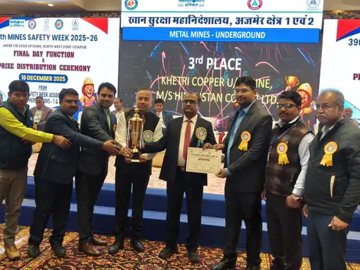 खेतड़ीनगर : खेतड़ीनगर के हिंदुस्तान कॉपर लिमिटेड (HCL) की खेतड़ी कॉपर कॉम्प्लेक्स (KCC) इकाई ने 39वें खान सुरक्षा सप्ताह में शानदार प्रदर्शन किया। केसीसी ने कुल छह पुरस्कार जीते, जिसमें प्लांट, मशीनरी, मेंटिनेंस और ऑपरेशन ऑफ वाइंडर श्रेणी में प्रथम पुरस्कार शामिल है।