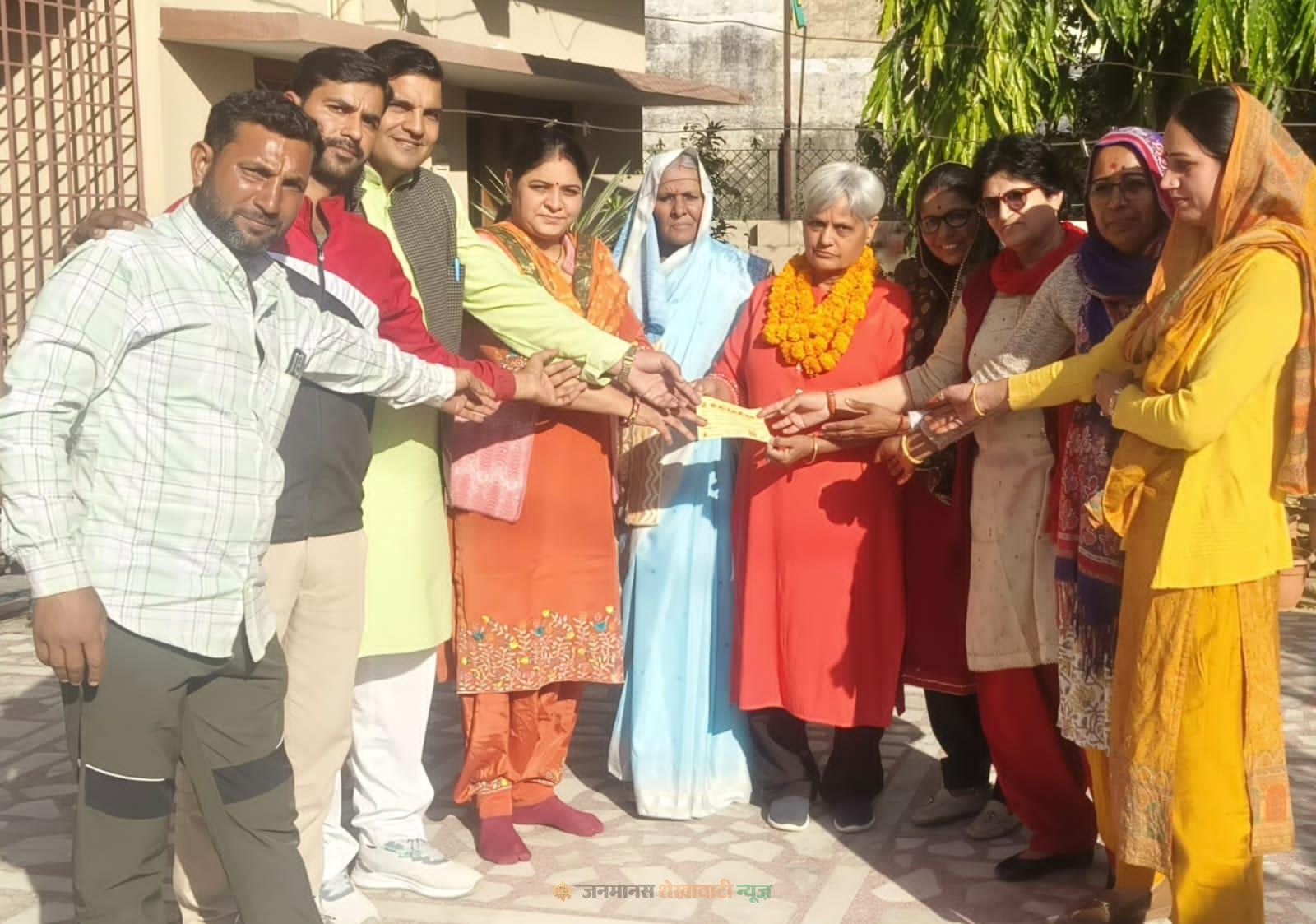 एक कमरे की घोषणा करने पर प्रेमलता कटेवा का महिला मोर्चा जिलाध्यक्ष संतोष चौधरी के नेतृत्व में प्रेमलता कटेवा का फूलमाला पहनाकर के स्वागत किया गया।