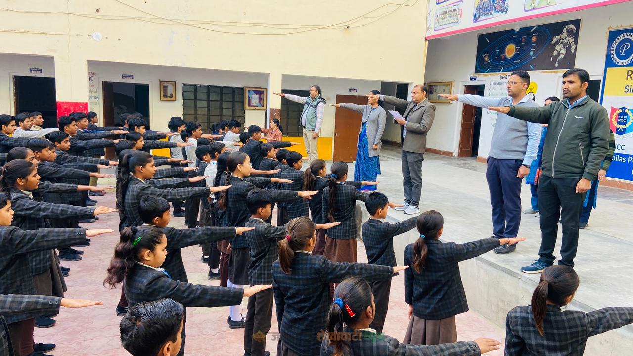 नवलगढ़ : विश्व हिंदू परिषद ने पानाबाई रामनाथ पोद्दार सीनियर सेकेंडरी स्कूल में सभी छात्र-छात्राओं व स्टाफ सदस्यों को चाइनीज व धातु मिश्रित मांजे के उपयोग एवं बिक्री पर रोक की शपथ दिलाई। इस अवसर पर विश्व हिंदू परिषद प्रखंड मंत्री सुरेश कुमावत ने चाइनीज मांजे व धातु मिश्रित मांजे के उपयोग से होने वाले नुकसान व दुर्घटनाओं के बारे में बताया। तत्पश्चात सभी को इसके उपयोग व बिक्री नहीं करने की शपथ दिलाई। कार्यक्रम में पुरुषोत्तम सैनी व सुरेंद्र तंवर ने भी विचार व्यक्त किए। इस दौरान अनिता कुमावत, विकास जांगिड़, पुरुषोत्तम सैनी, सुरेंद्र थ्योरी, सुमित्रा, सुरेंद्र तंवर, भावना शर्मा, मोनिका सैन, अदिति शर्मा, उमेश शर्मा, योगेश वर्मा, दीपक सैनी, राजेश नेहरा, राजेश सैनी, बबीता, नानी बाई, रचना सैनी, लोकेश कुमार, सुल्तान सिंह,आदि शिक्षक गण सहित कर्मचारी, छात्र- छात्राएं मौजूद रहे।