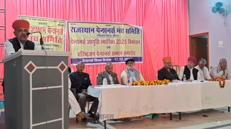 सीकर : राजस्थान पेंशनर्स मंच समिति के तत्वावधान में “पेंशनर्स डे” समारोह का आयोजन सीकर शहर के बद्री विहार में किया गया। कार्यक्रम की अध्यक्षता मंच के वरिष्ठ उपाध्यक्ष गोपीराम जांगिड़ ने की। मुख्य अतिथि सीकर के अतिरिक्त जिला कलेक्टर रतन कुमार स्वामी तथा विशिष्ट अतिथि कोषाधिकारी विक्रम सिंह भूकर रहे।