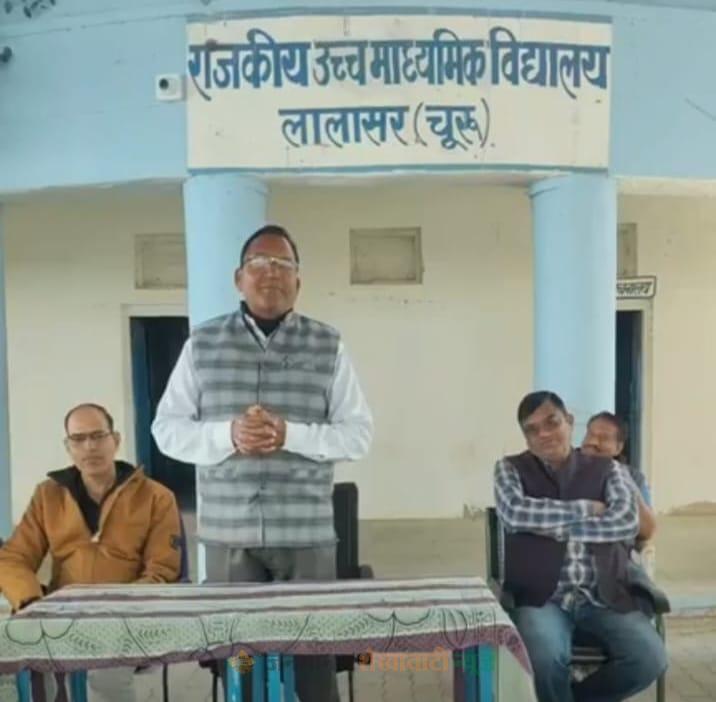 चुरु : जिला मुख्यालय के निकटवर्ती गांव लालासर में राजकीय उच्च माध्यमिक विद्यालय के सभागार में आयोजित मोटि वेशनल कार्यक्रम में मुख्य वक्ता एडवोकेट रामेश्वर प्रजापति ने बच्चों को संस्कारित शिक्षा देते हुए बच्चों को प्रातः चार बजे उठने व सुबह कम से कम तीन घंटे घर पर पढ़कर शाला आने का स्वैच्छिक संकल्प दीलाया। उन्होंने कहा कि प्यारे बच्चों लक्ष्य बनाकर सकारात्मक सोच के साथ बुजुर्गो के आशीर्वाद से आगे बढ़ना है और पढ़ना है उन्होंने बच्चों को प्रातः जल्दी उठने के, लिखकर याद करने के, अंकुरित अनाज को भोजन का हिस्सा बनाने के, प्रयाप्त पानी पिटने के अनगिनत फायदे बताते हुए स्मार्टफोन फोन के नुकसान की विस्तृत जानकारी दी।