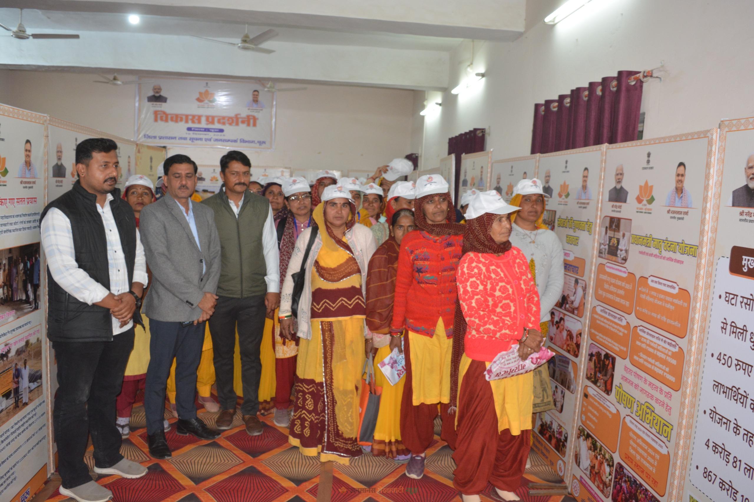 चूरू : प्रदेश सरकार के दो वर्ष पूर्ण होने पर सूचना केंद्र में आयोजित जिला स्तरीय विकास प्रदर्शनी का शुक्रवार को विधायक हरलाल सहारण सहित जनप्रतिनिधियों, अधिकारियों, कार्मिकों व साथिनों ने अवलोकन किया। प्रदर्शनी में जिले के विकास कार्यों की झलकियों की सराहना की गई।