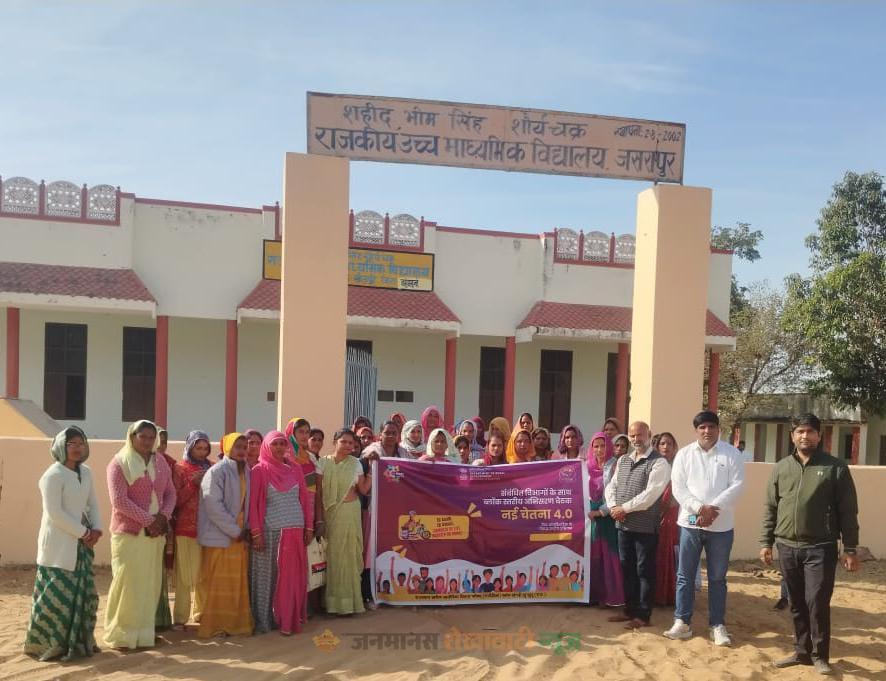 खेतड़ी : राज्य सरकार के दो वर्ष पूर्ण होने के उपलक्ष्य में ग्राम पंचायत जसरापुर में ‘नव चेतना 4.0’ अभियान के तहत ब्लॉक स्तरीय कार्यक्रम का आयोजन दुर्गा देवी की अध्यक्षता में किया गया। यह कार्यक्रम राजस्थान ग्रामीण आजीविका विकास परिषद के तत्वावधान में आयोजित हुआ, जिसका मुख्य उद्देश्य ग्रामीण महिलाओं को सामाजिक, आर्थिक और मानसिक रूप से सशक्त बनाना रहा। कार्यक्रम में बड़ी संख्या में महिलाओं की सहभागिता देखने को मिली।