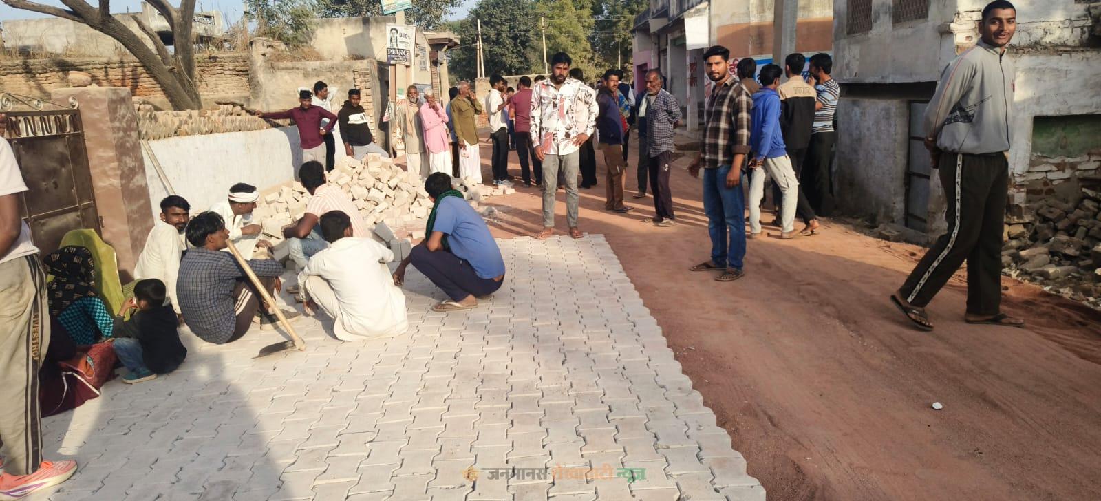 कंकड़ेऊ कलां में मापदंडों की अनदेखी कर इंटरलॉक सड़क निर्माण का विरोध