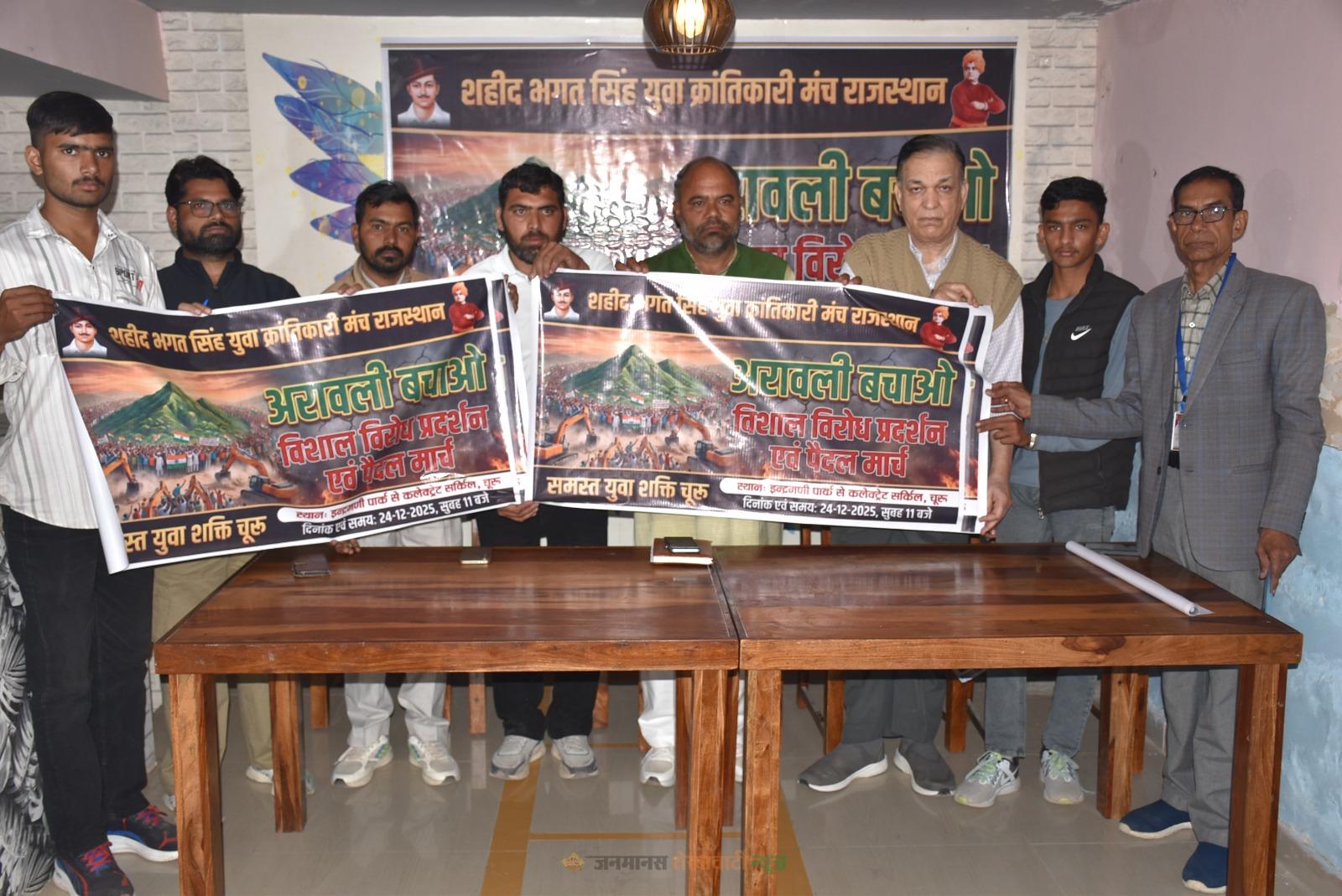 चूरू : चूरू में शहीद भगत सिंह युवा क्रांतिकारी मंच ने अरावली बचाओ आंदोलन को लेकर एक बैठक की। जिसमें 24 दिसंबर को होने वाले विरोध प्रदर्शन और पैदल मार्च की तैयारियों को लेकर चर्चा की गई।