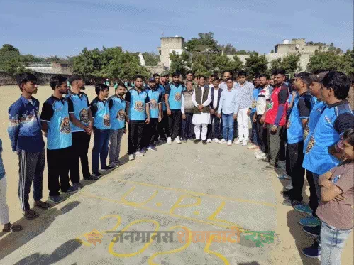 उदयपुरवाटी कप 2025 की शुरूआत:विधायक भगवानाराम सैनी ने शॉट मारकर किया शुभारंभ, विजेता को एक लाख नकद इनाम; मैन ऑफ द सीरीज स्कूटी
