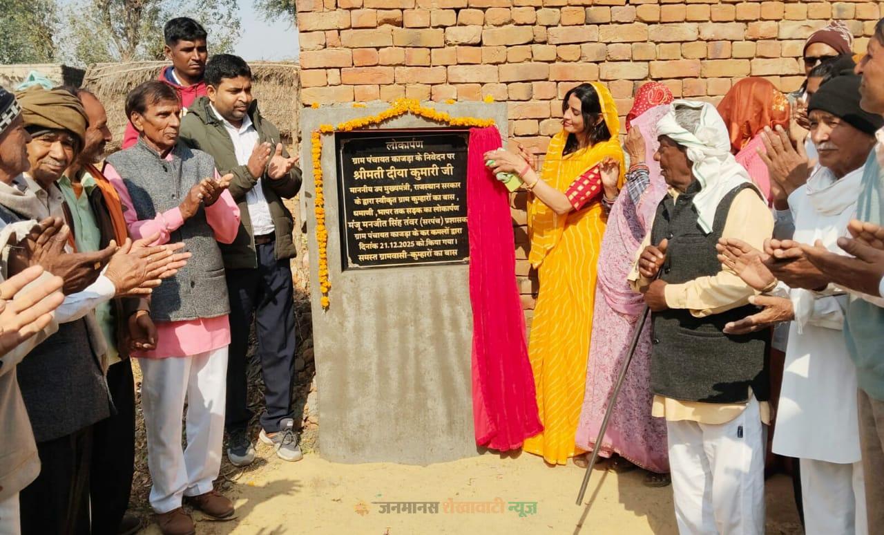 सूरजगढ़ : क्षेत्र की ग्राम पंचायत काजड़ा की निवर्तमान सरपंच व प्रशासक मंजू तंवर ने उपमुख्यमंत्री दीया कुमारी राजस्थान सरकार के निर्देशानुसार ग्राम कुम्हारों का बास से भापर तक बनी नई सड़क का लोकार्पण किया। यह पांच किलोमीटर लंबी सड़क सरपंच मंजू तंवर ने अपने कार्यकाल के दौरान उपमुख्यमंत्री दीया कुमारी से स्वीकृत करवाई थी। सड़क कुम्हारों का बास से भापर, धमाणी जोहड़ी और नाथजी का कुआं तक बनाई गई है। काजड़ा प्रशासक मंजू तंवर ने यशस्वी उपमुख्यमंत्री दीया कुमारी राजस्थान सरकार का आभार प्रकट करते हुए नई सड़क का लोकार्पण कर ग्रामवासियों को पंचायत मुख्यालय से जोड़ने का ऐतिहासिक कार्य किया है। इस खुशी में ग्रामवासियों ने सरपंच मंजू तंवर के सम्मान में भव्य सम्मान समारोह का आयोजन किया।